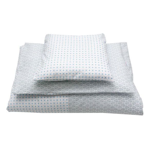 - Комплекта включва горен плик за завивка, възглавница със сваляща се калъфка и обиколник.