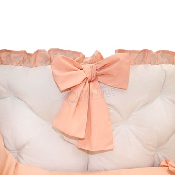- Дизайнът е момичешки с очарователни къдрички по края на обиколниците, както и панделка в средата за пълен разкош