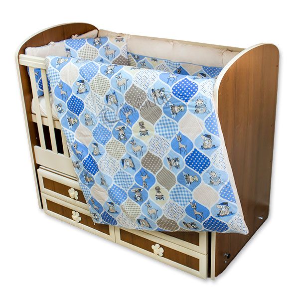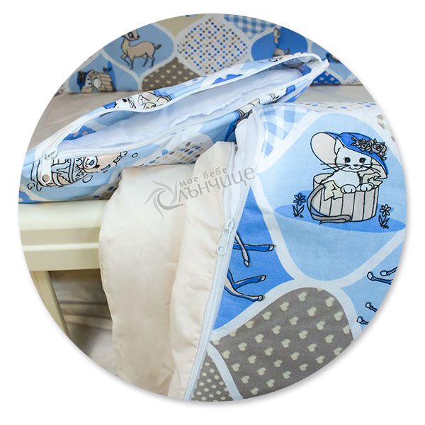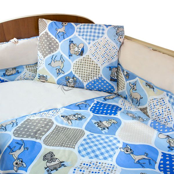- Попълнете детското легло с великолепния десен Animals в син цвят. Чудесна комбинация за малкото момче.