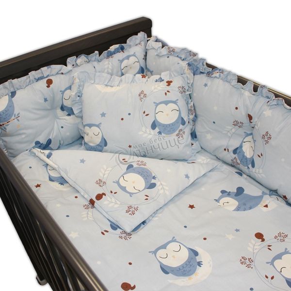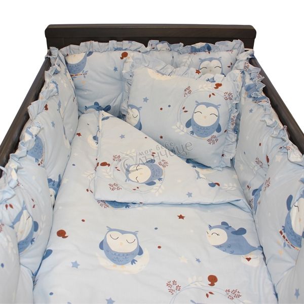 - Спален комплект Sleeping Owls е изключително подходящ за новородено бебе благодарение на вложения висококачествен 100% памук, който е нежен към деликатната бебешка кожа.