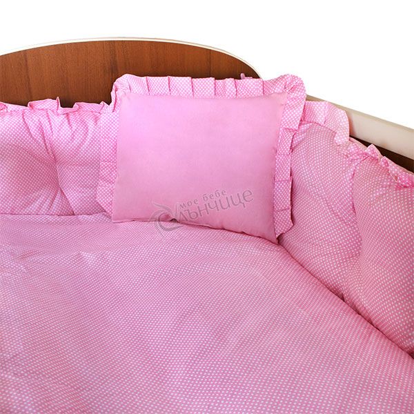 - В комплекта са включени мека олекотена завивка, четири обиколника с връзки за лесно организиране на пространството около бебето, чаршаф и възглавница.