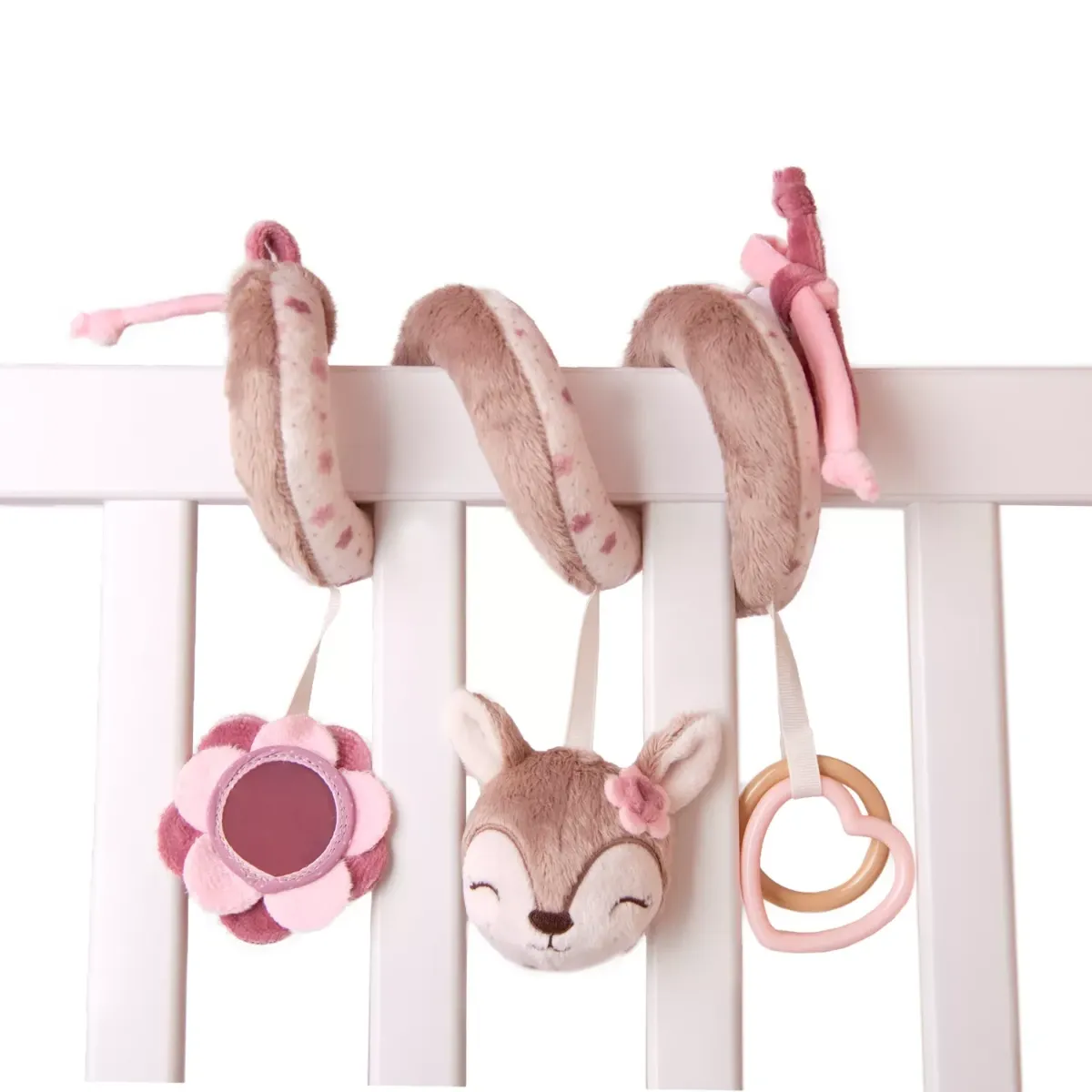 - Гъвкавата спираловидна форма позволява лесно и сигурно увиване около количка, столче за кола или бебешко креватче.