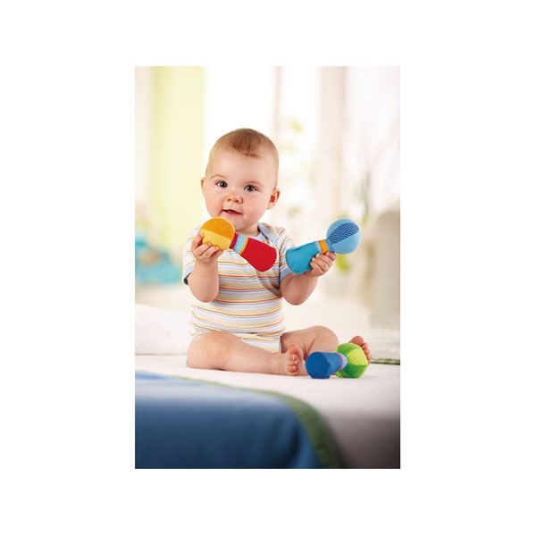 - Забавна и цветна текстилна играчка за бебета, която при разклащане издава нежен звук.