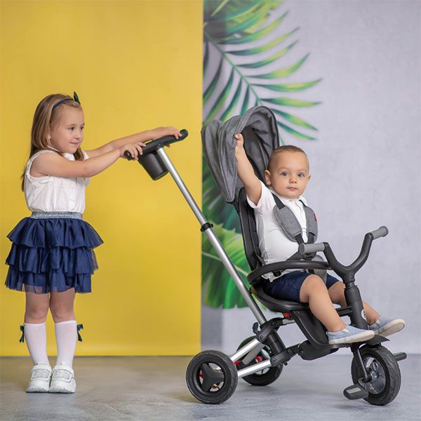 - Регулируема родителска дръжка и задна крачна спирачка за правилно и комфортно управление от родителя