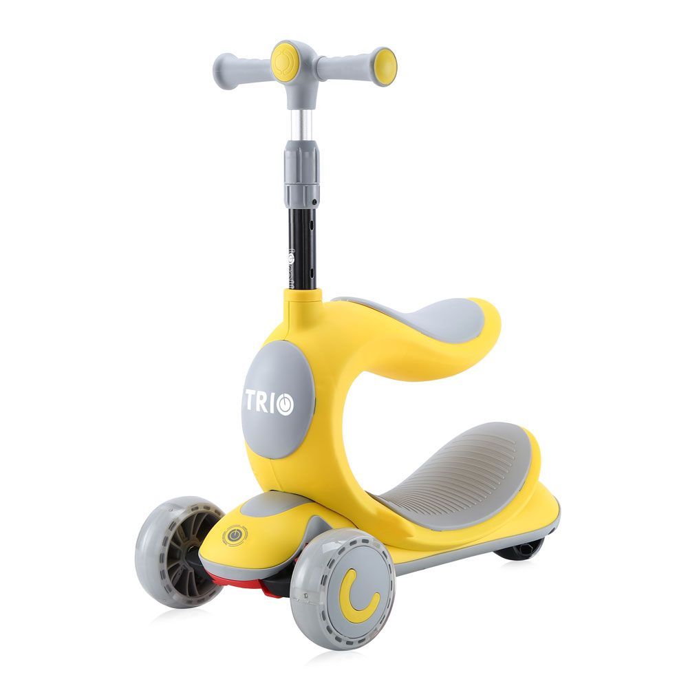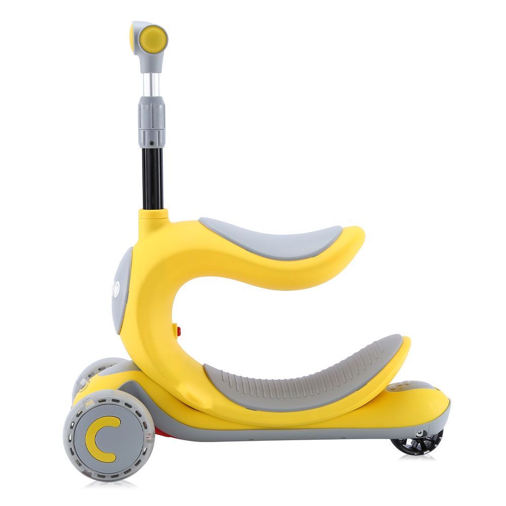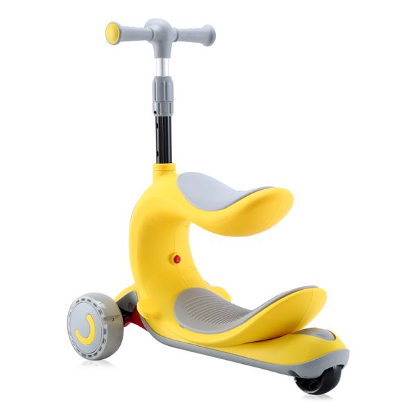 - Тротинетка със седалка, подходяща за развитие на баланса.