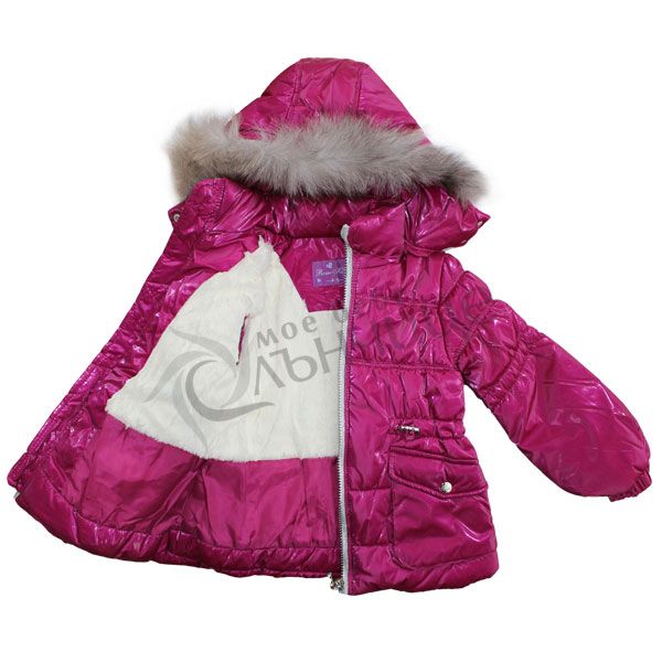 - Предлага се в кокетен дизайн в розово и лилаво с пухкава качулка и джобчета.