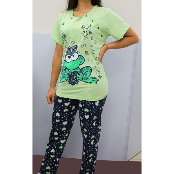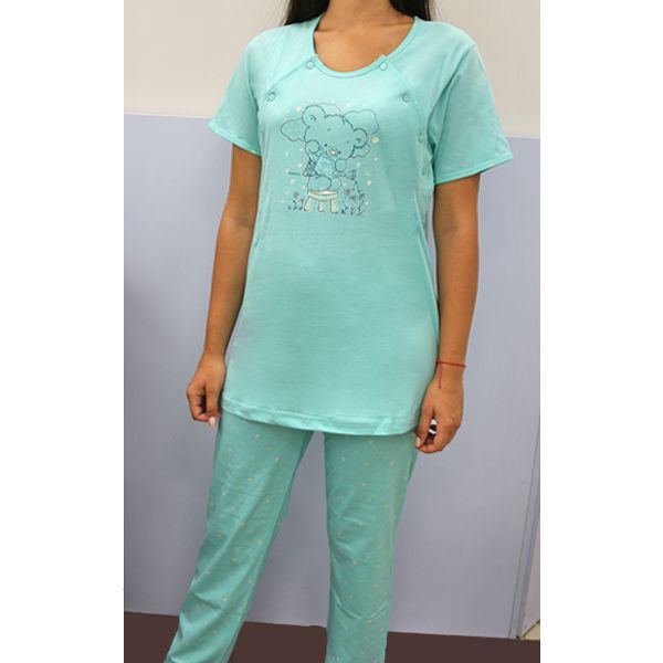 - Модела е от две части - горнище с къс ръкав и дълъг панталон.