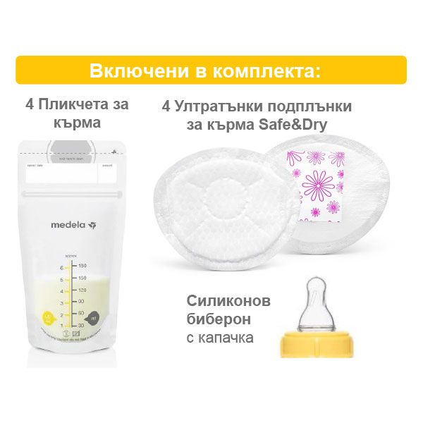 Двуфазна ръчна помпа за кърма HARMONY с включени най-необходимите продукти за старт на кърменето