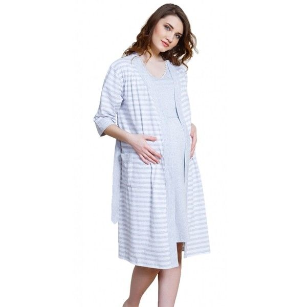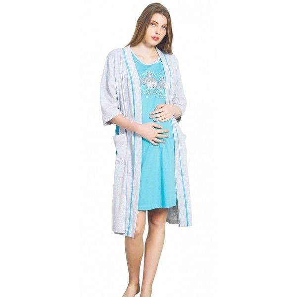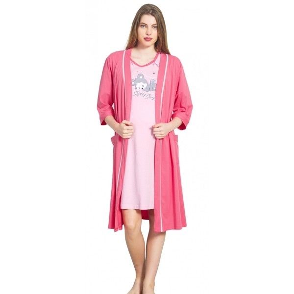 - Нощница за кърмене с къс ръкав с халат